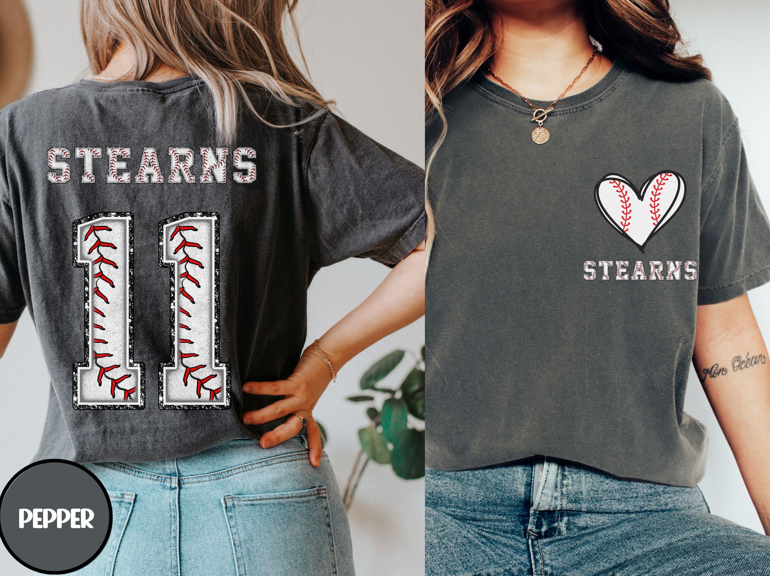 This super soft Custom Two sided Baseball heart shirt is perfect to show your support for that special baseball player. Elevate your game day apparel with a baseball momshirt personalized with your name and number on the back. Wear on game day as a tball mom or majors baseball mom. Makes for a perfect gift for mothers day, a birthday gift, or a sports mama.