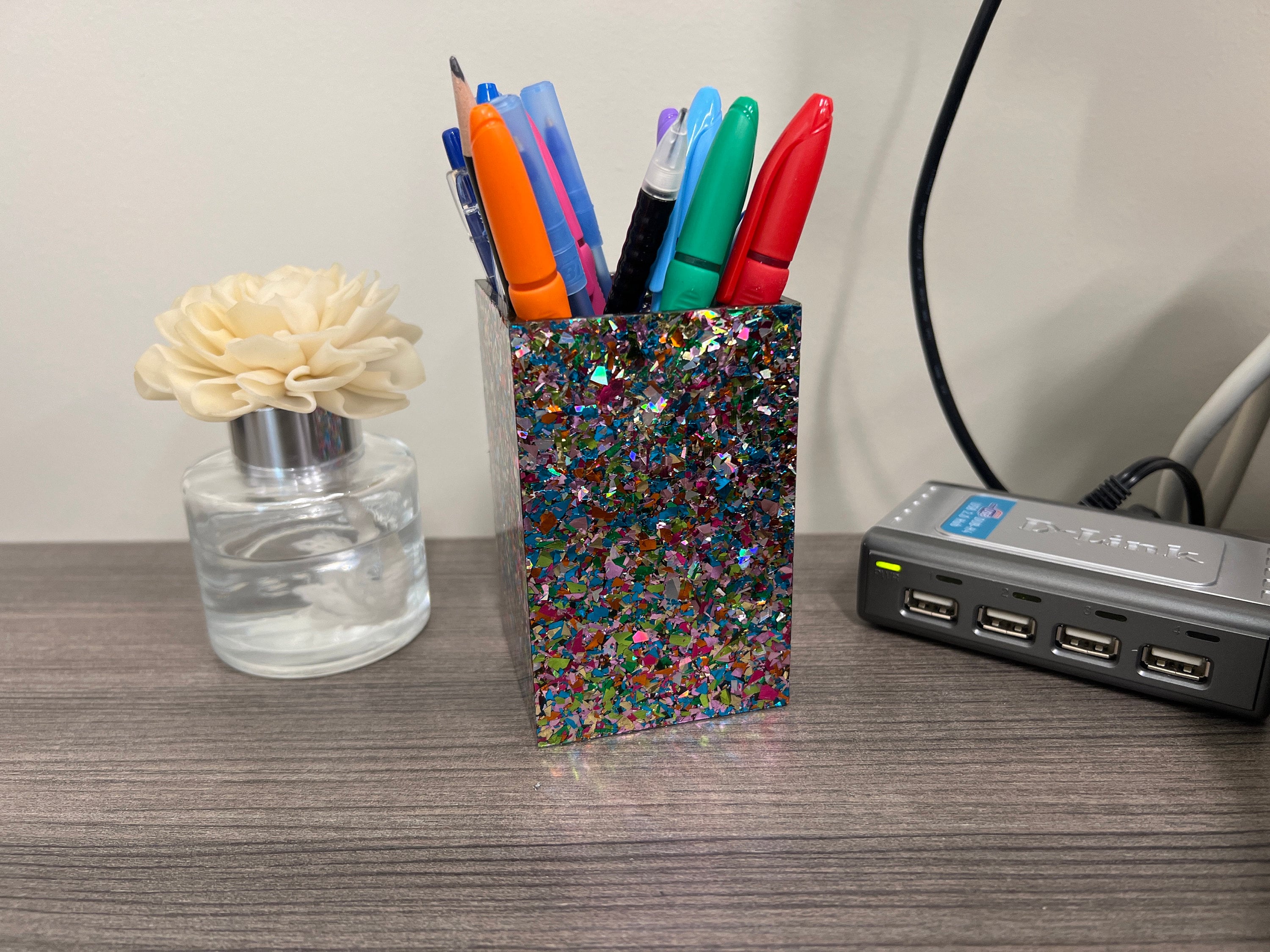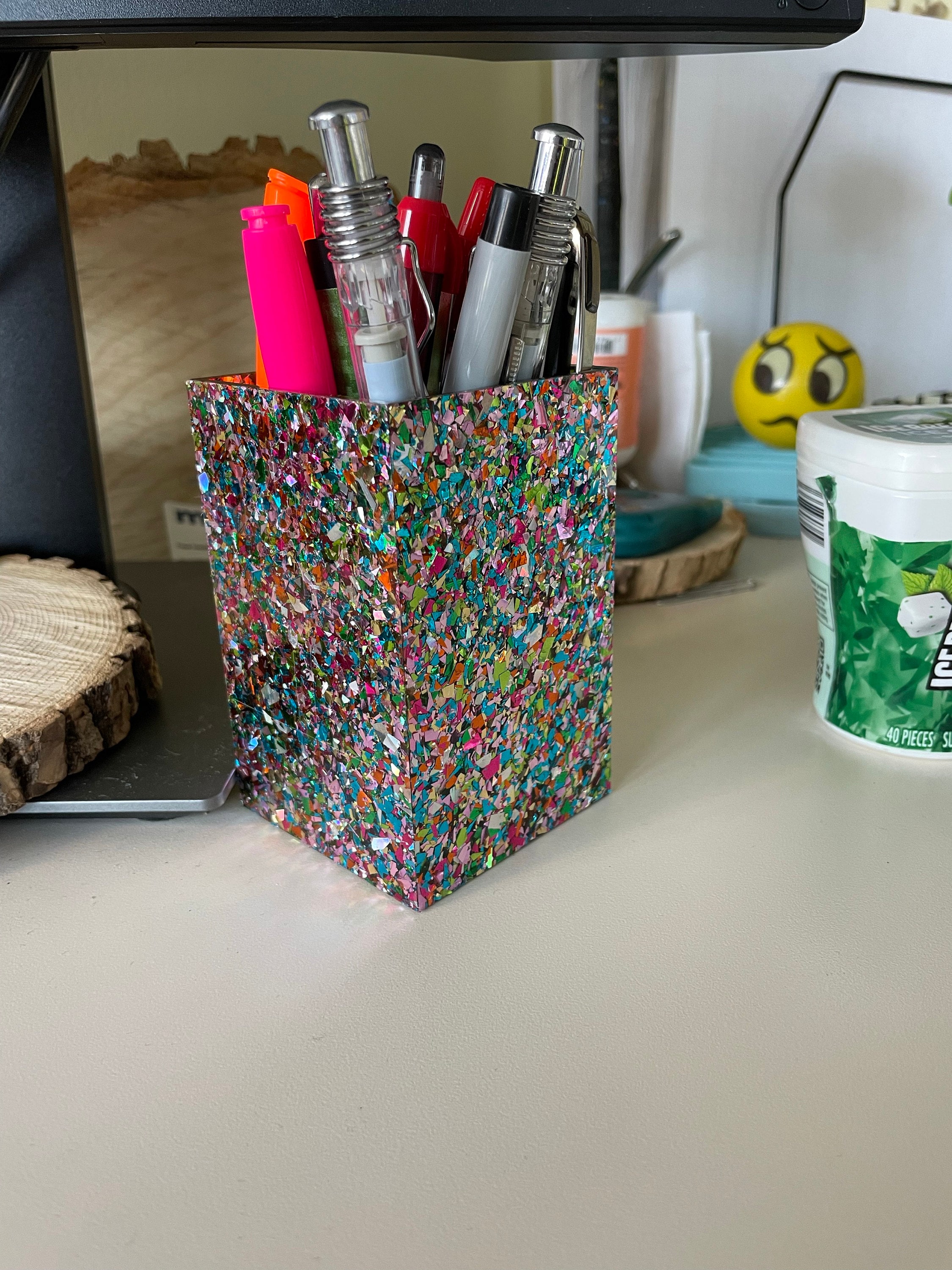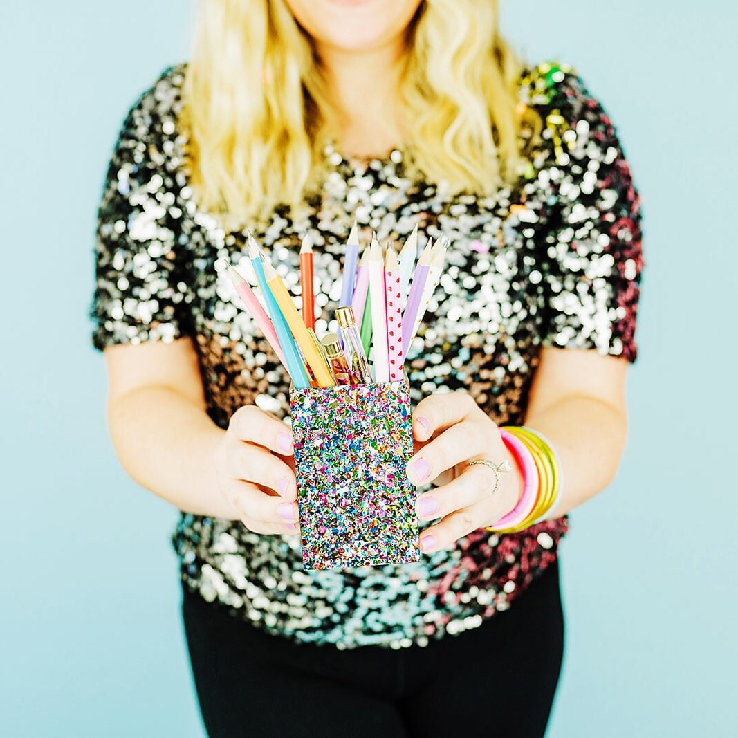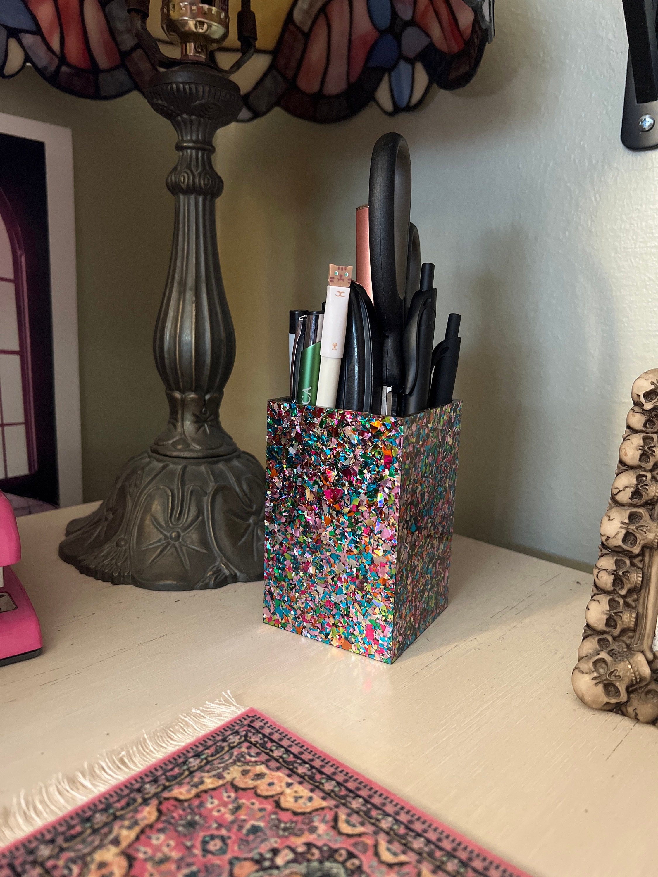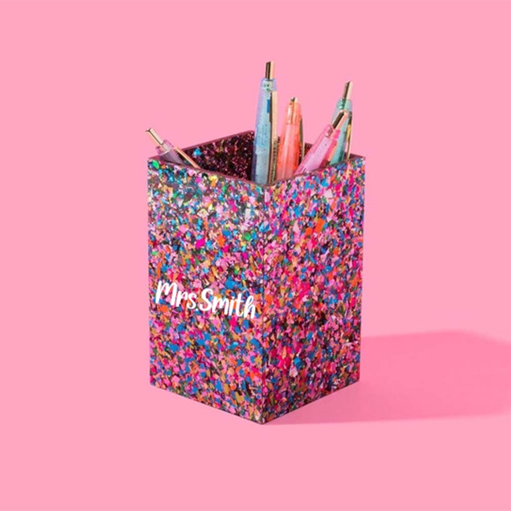 What is better than confetti? Having confetti on your desk {without the mess} with our Confetti Acrylic pen cup!