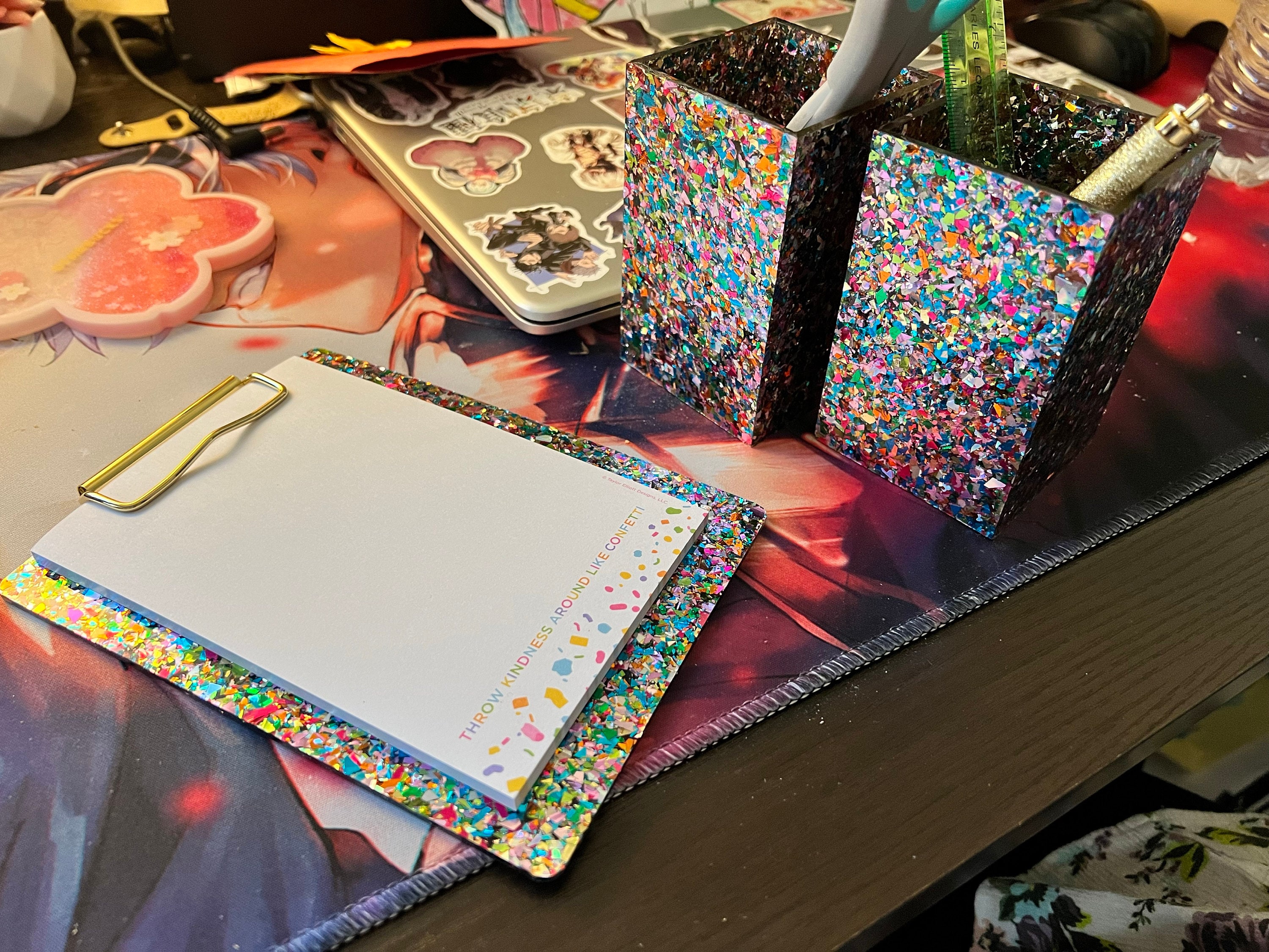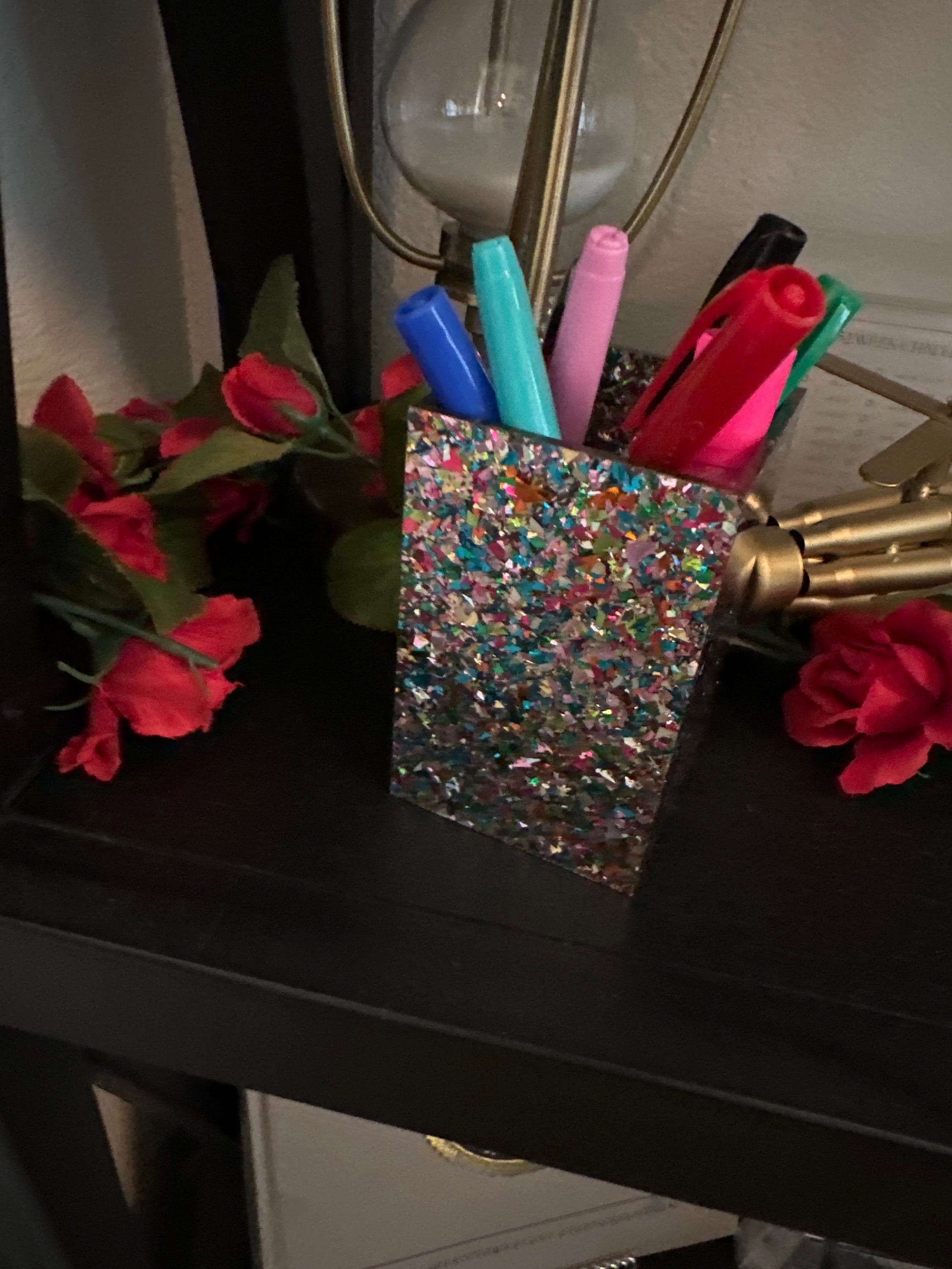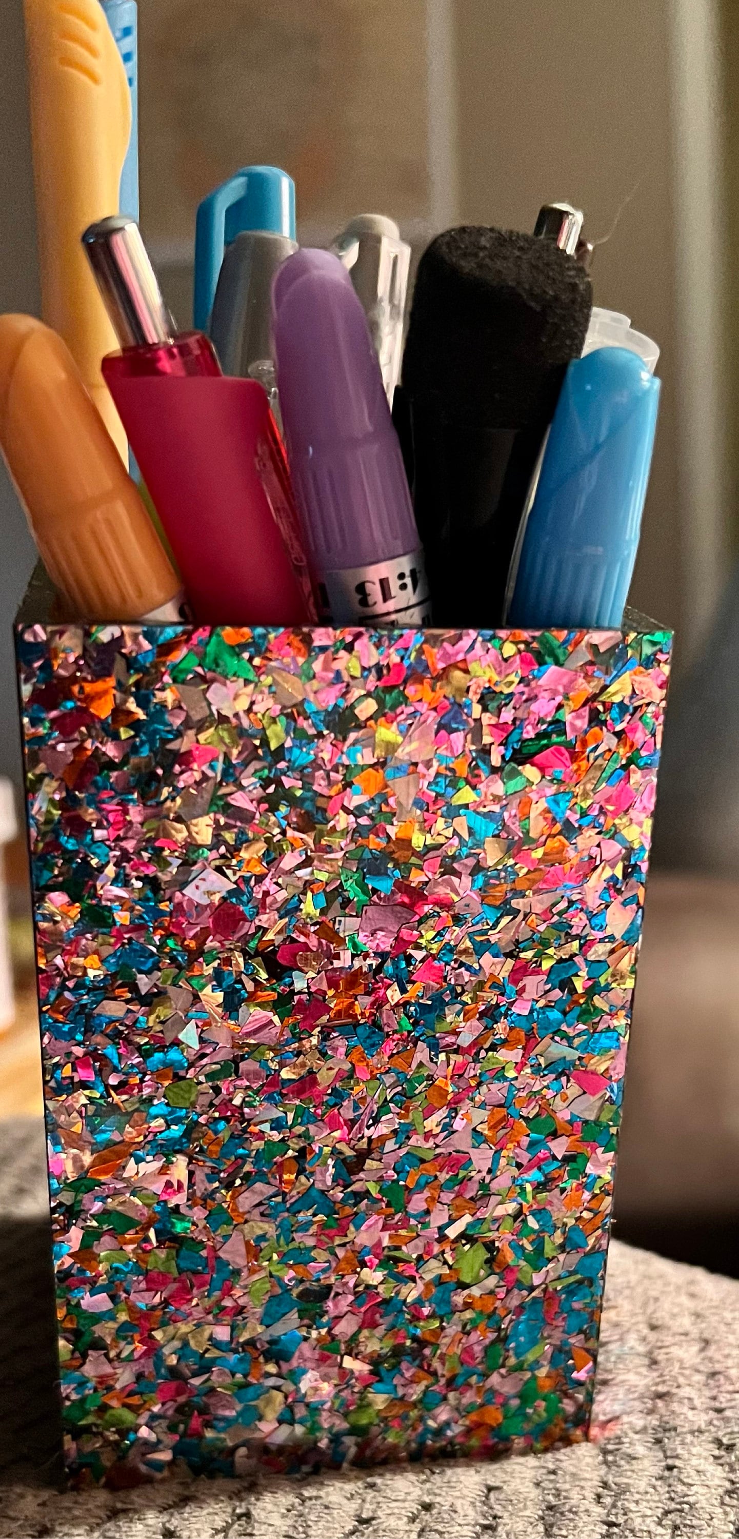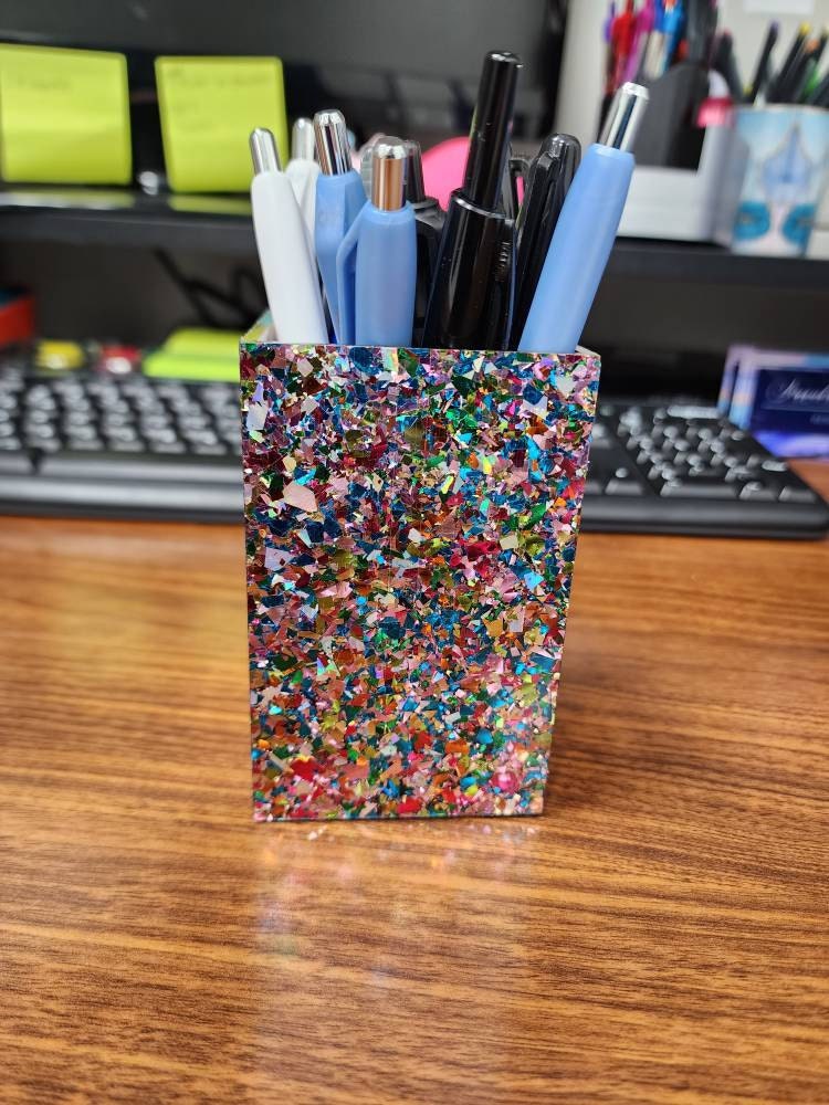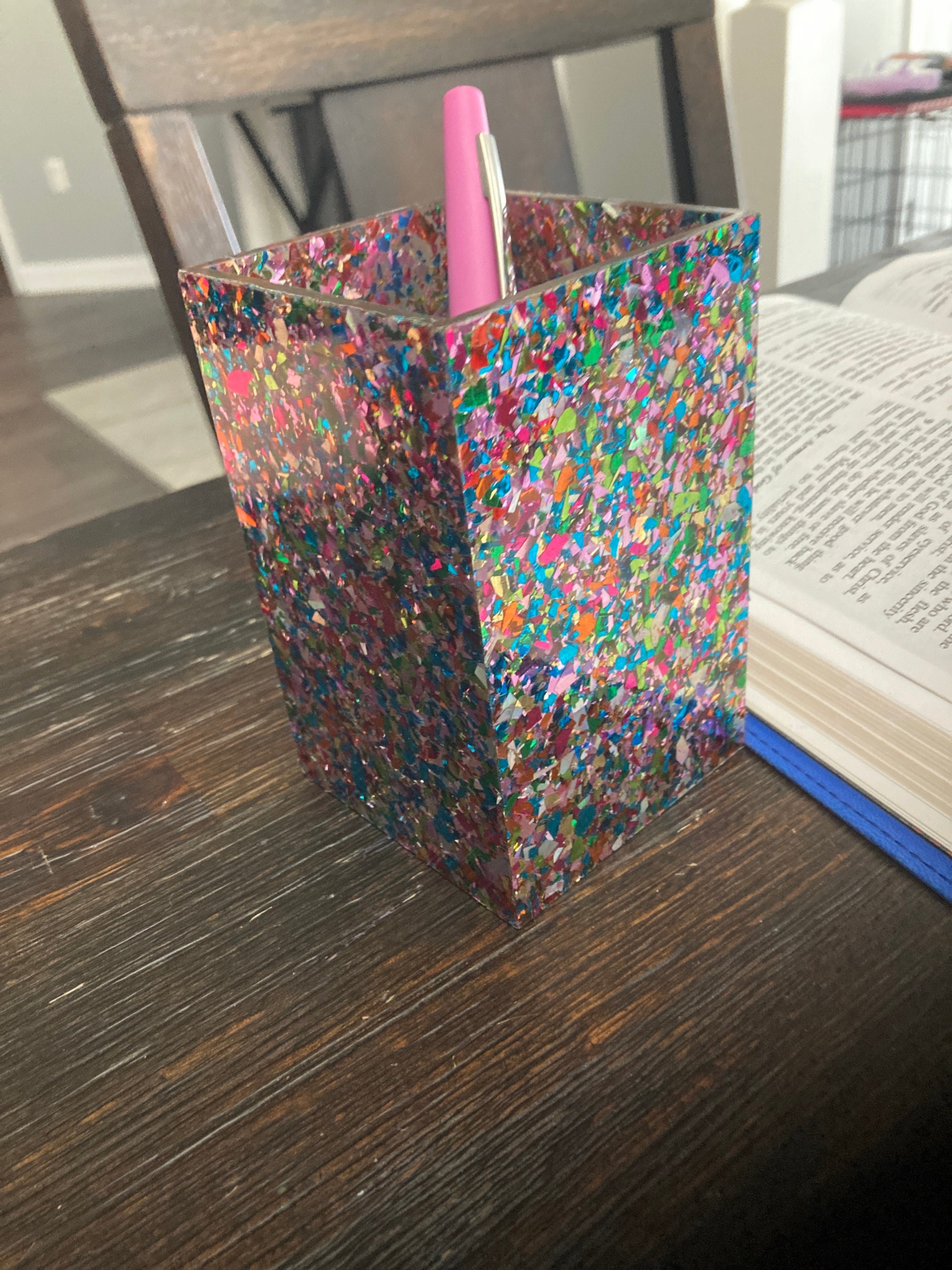 What is better than confetti? Having confetti on your desk {without the mess} with our Confetti Acrylic pen cup!