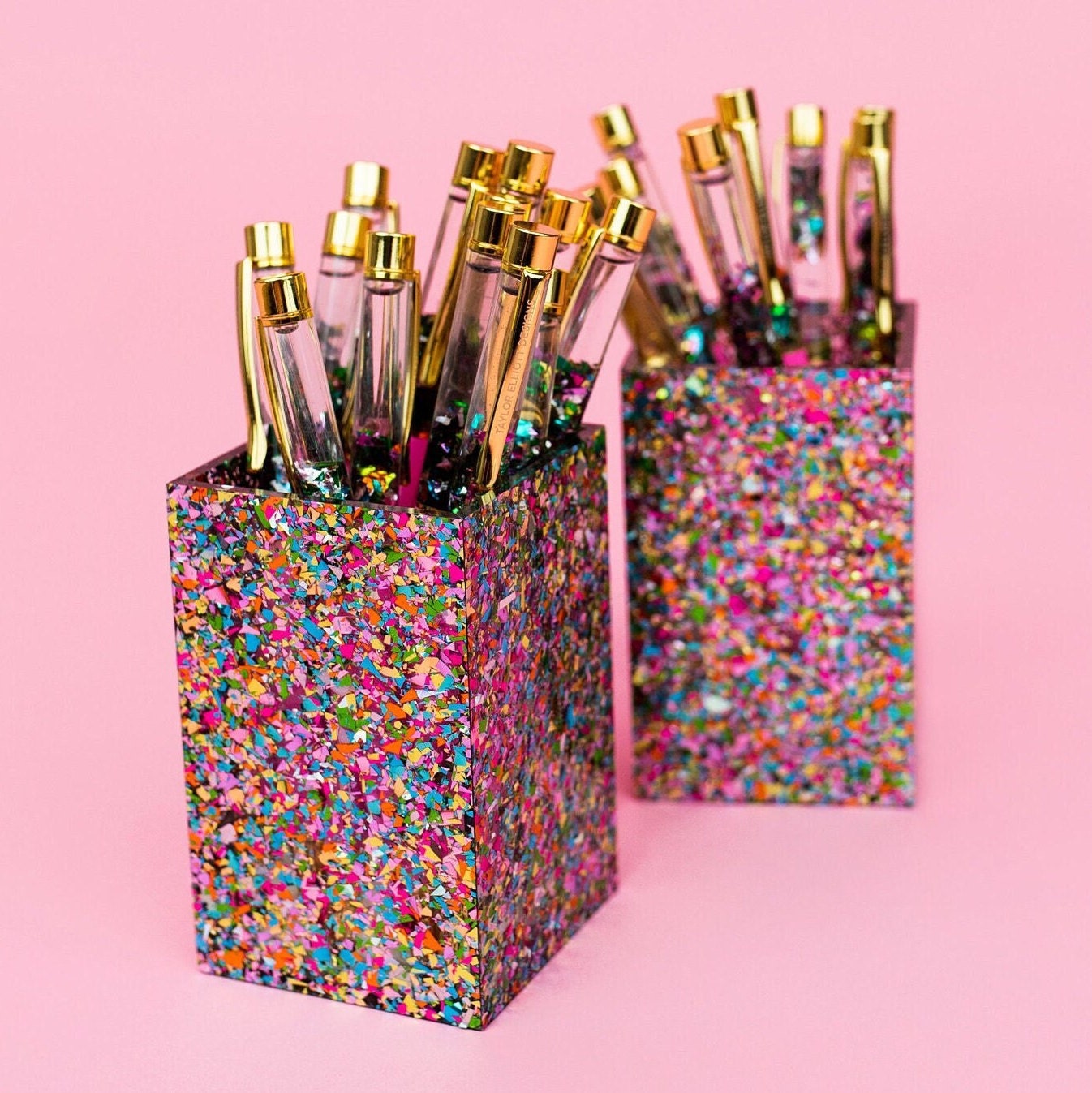 Confetti Acrylic Pen + Pencil Cup Holder - Pen Cup for Desk Pencil Cup Holder Cute Desk Accessories Stationery Fun Desk Decor