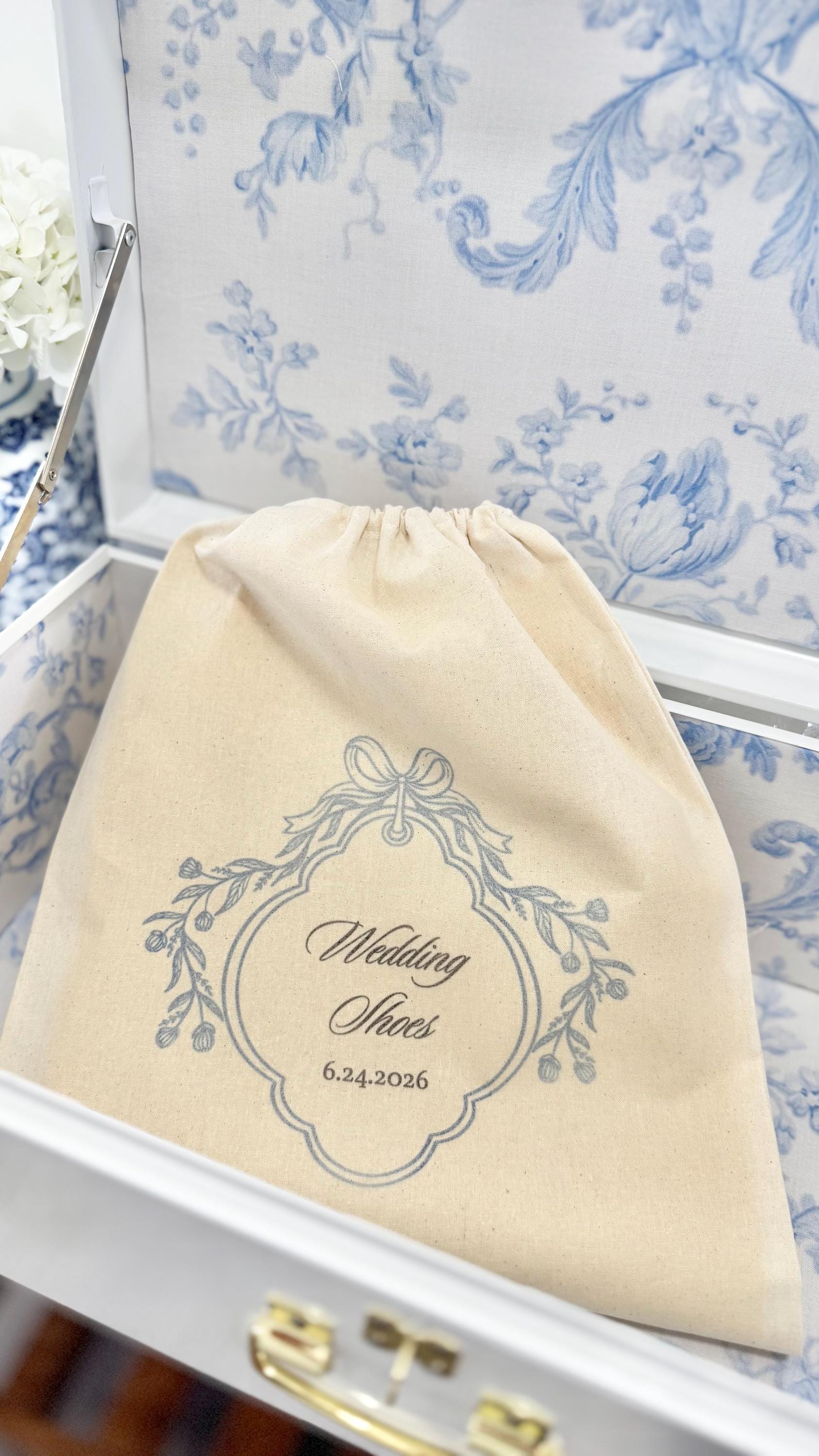 Custom Wedding Shoe Bag for Bride, Keepsake Trunk Dust Bag for Bride, Accessory Storage Bag Protection for Wedding Day Veil Storage for Bride
