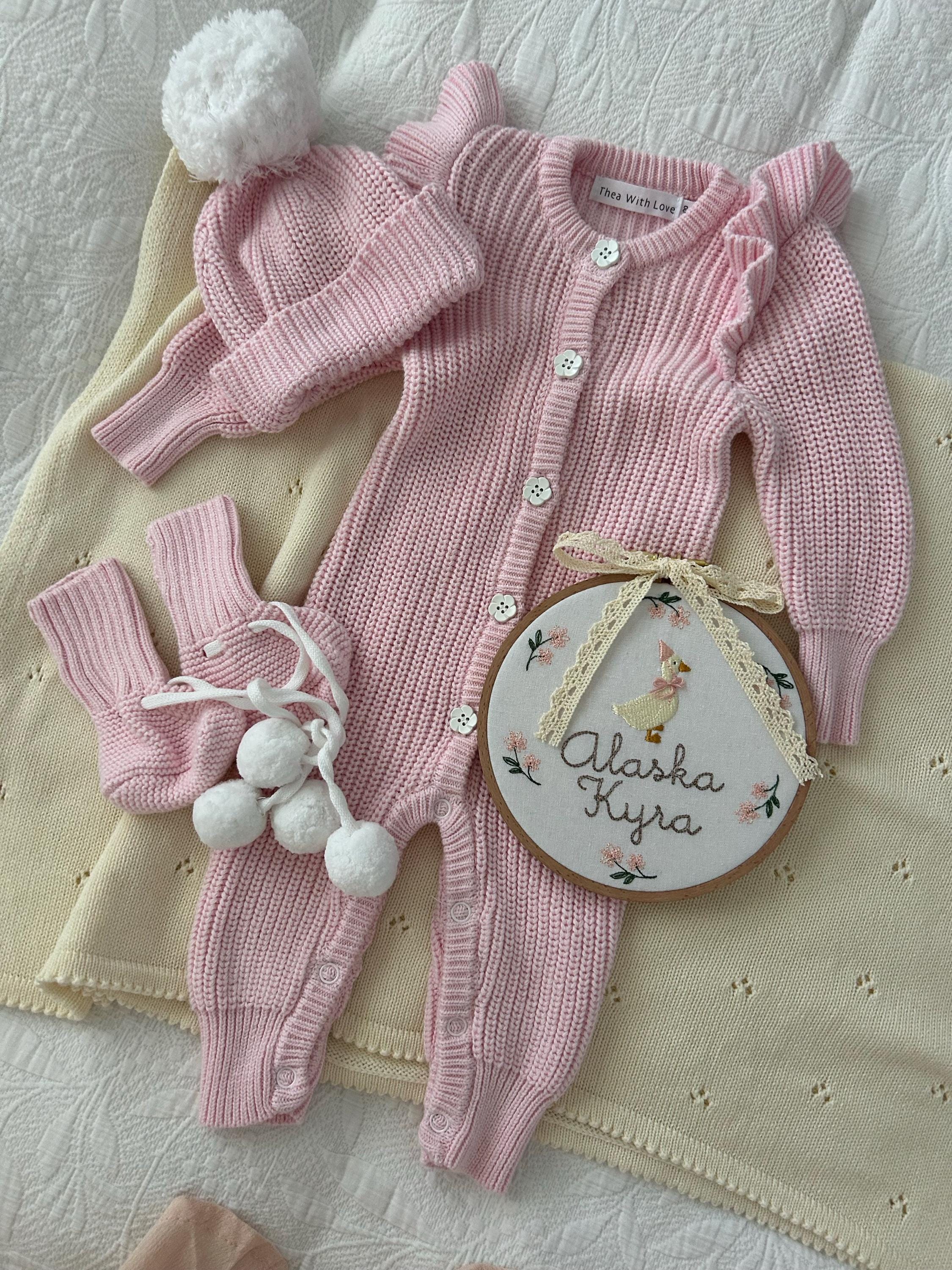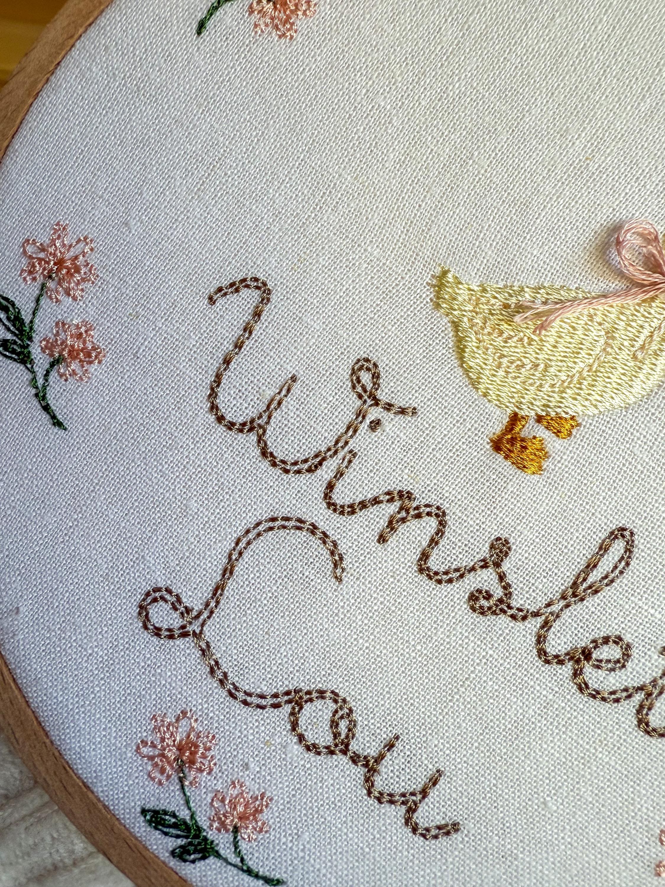 Our beautiful linen embroidered hoops are the perfect addition to your baby name announcement, to display your babies name on their nursery door, or to add that personal touch to their nursery or room as a personalized wall hanging.