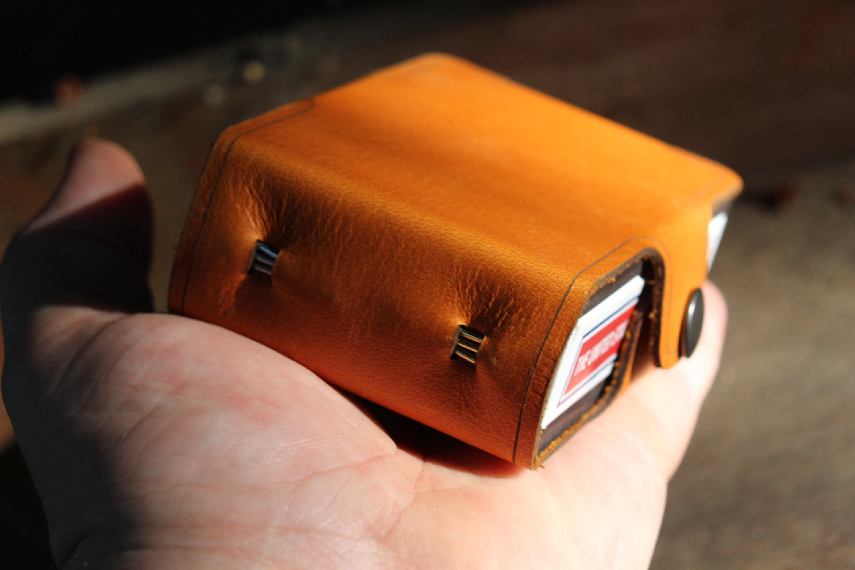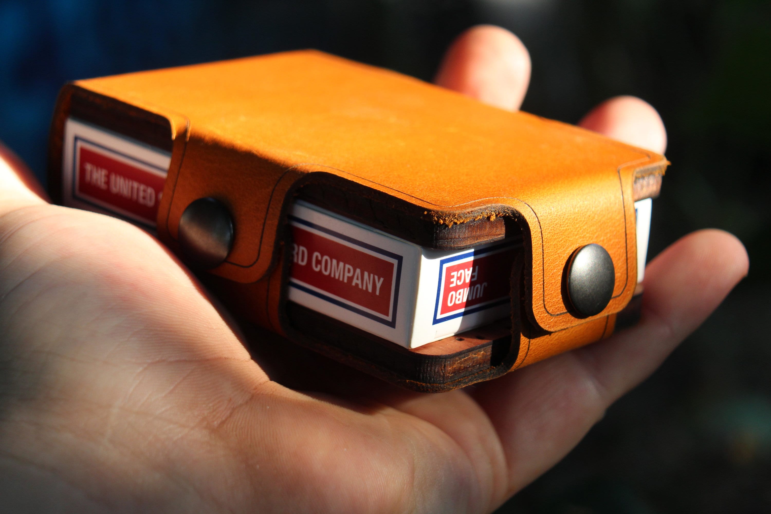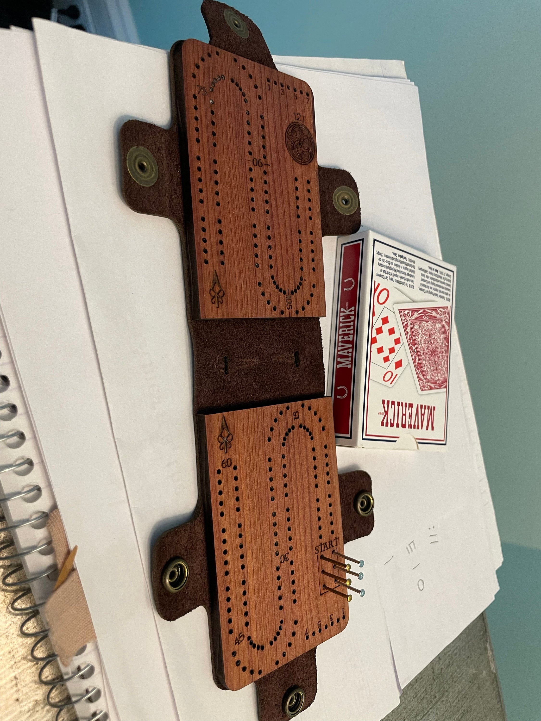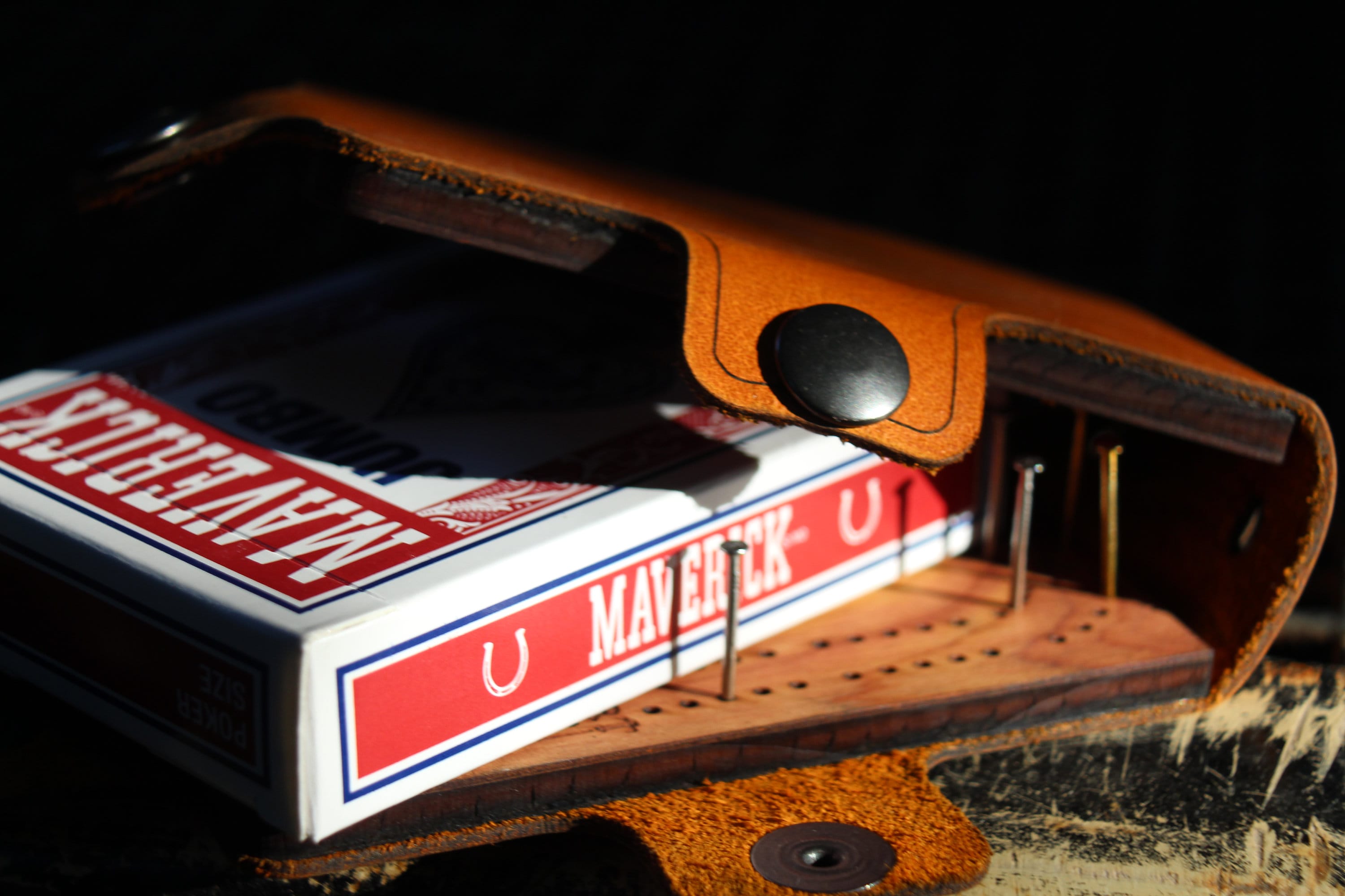 Our Cribbage boards are hand made and may show some natural variations in color of leather or wood. As they are real materials, it’s impossible to show the figuring on either the cedar or the leather. Some are more expressive — the cedar with knots and the leather sometimes even having scars. Expect variations.