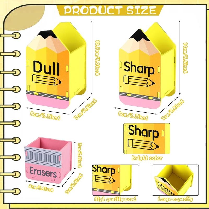 ăPen HolderïŒEraser StorageăYou will get 2 pencil shaped pencil holders in 2 styles, one is printed with the word [] in sharpened pencil style, and the other is [dull] in unsharpened pencil style, We've also thoughtfully added an eraser organizer.which can double the storage and half the clutter.This also allows for quicker sorting of pencils to be.