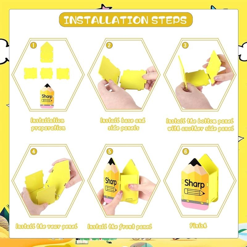 ăEasy Assembly ProcessăThis cute pencil holder for desk only takes a few steps to assemble, dispatching of the four boards according to the grooves is all you need, enabling you to enjoy your cohesive, and pleasant stationery organizer in no time.