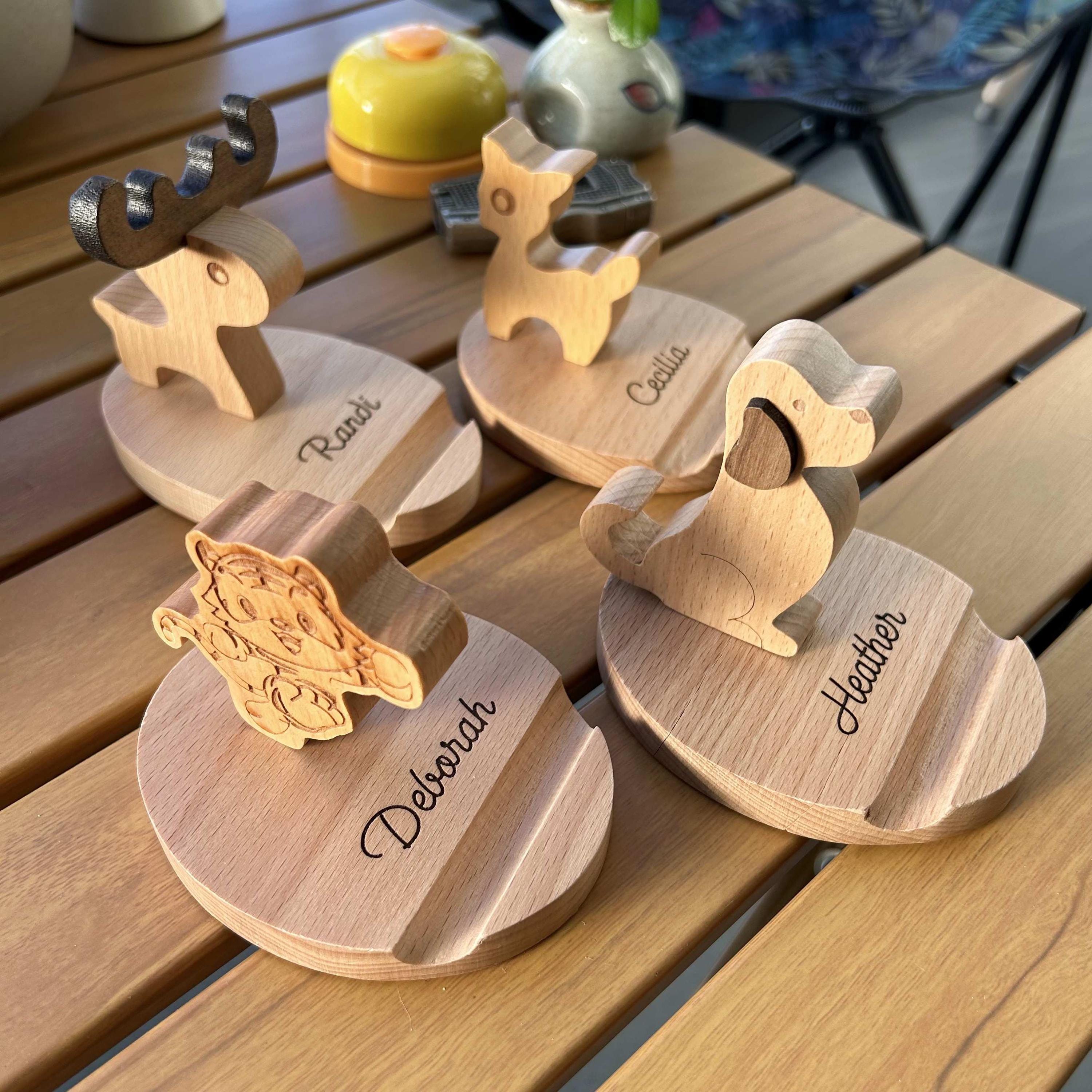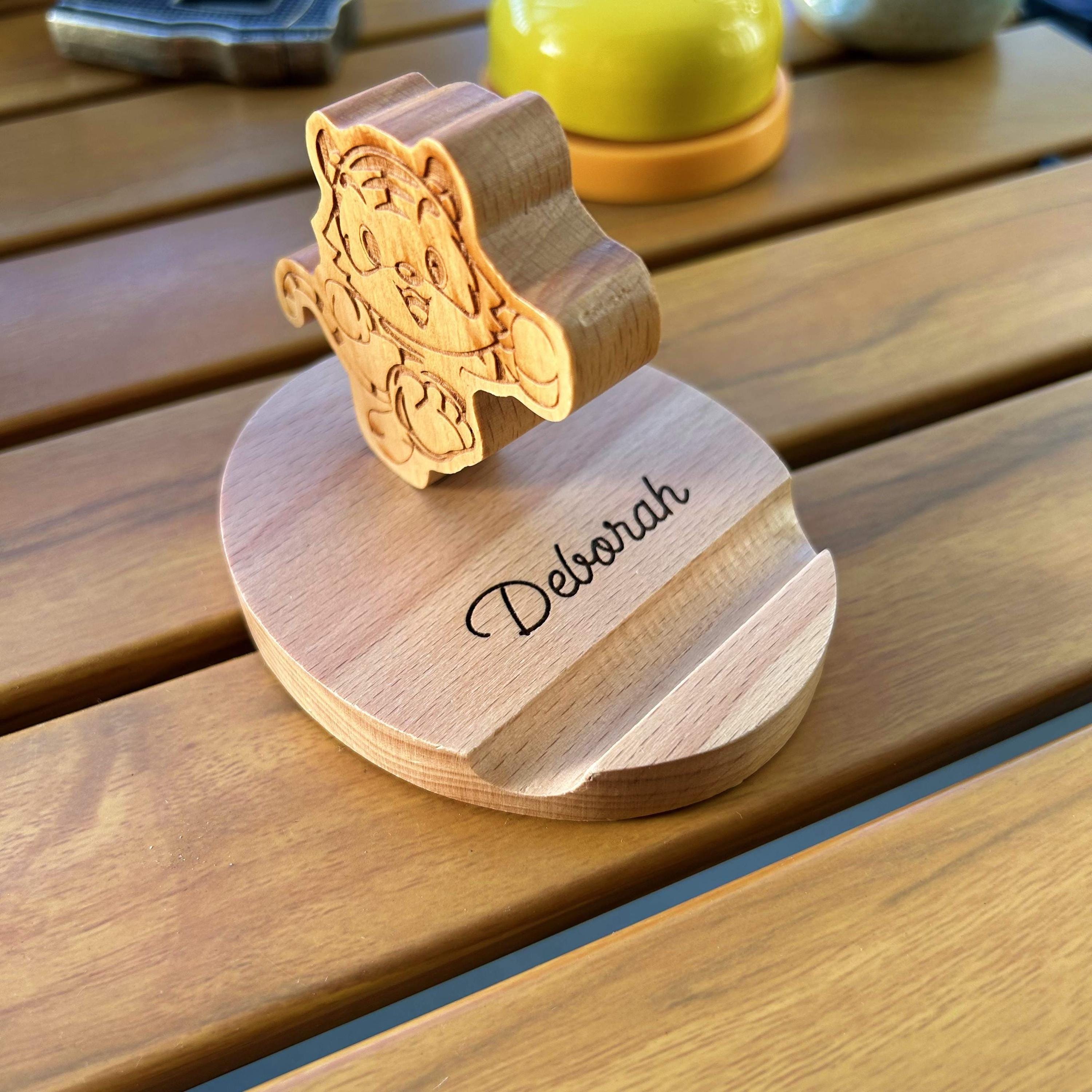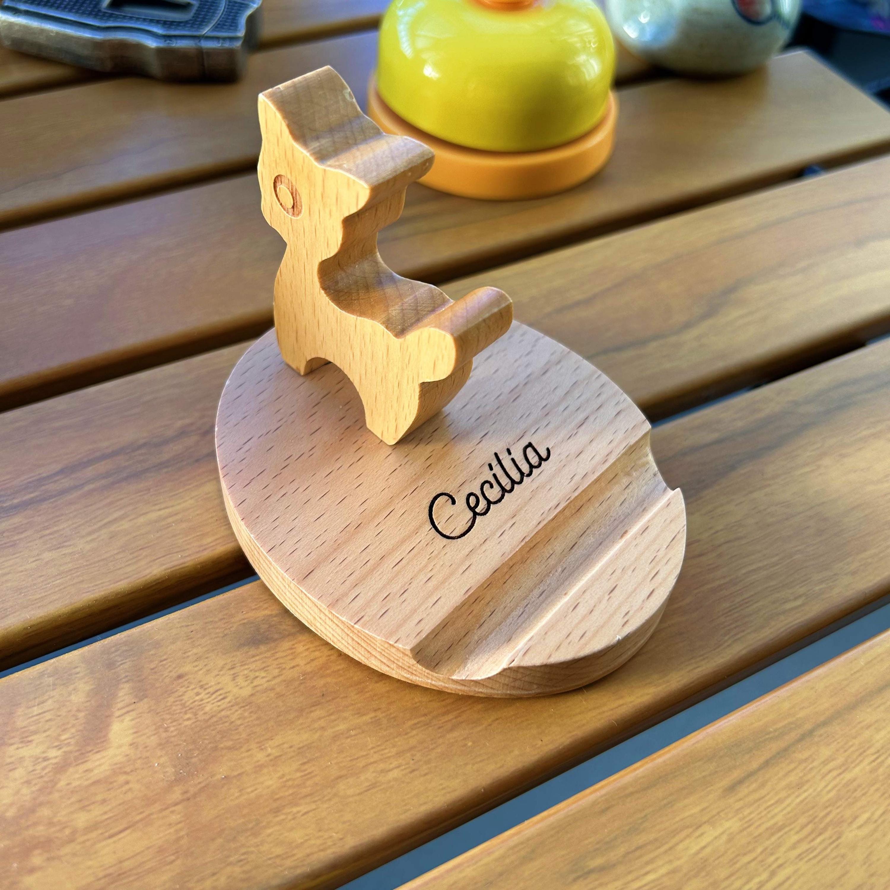 Personalized Wood Cell Phone Tablet Stand, Handmade Engraved Animal Cell Phone Holder, Cradle Mount Organizer for Office, School, and Home