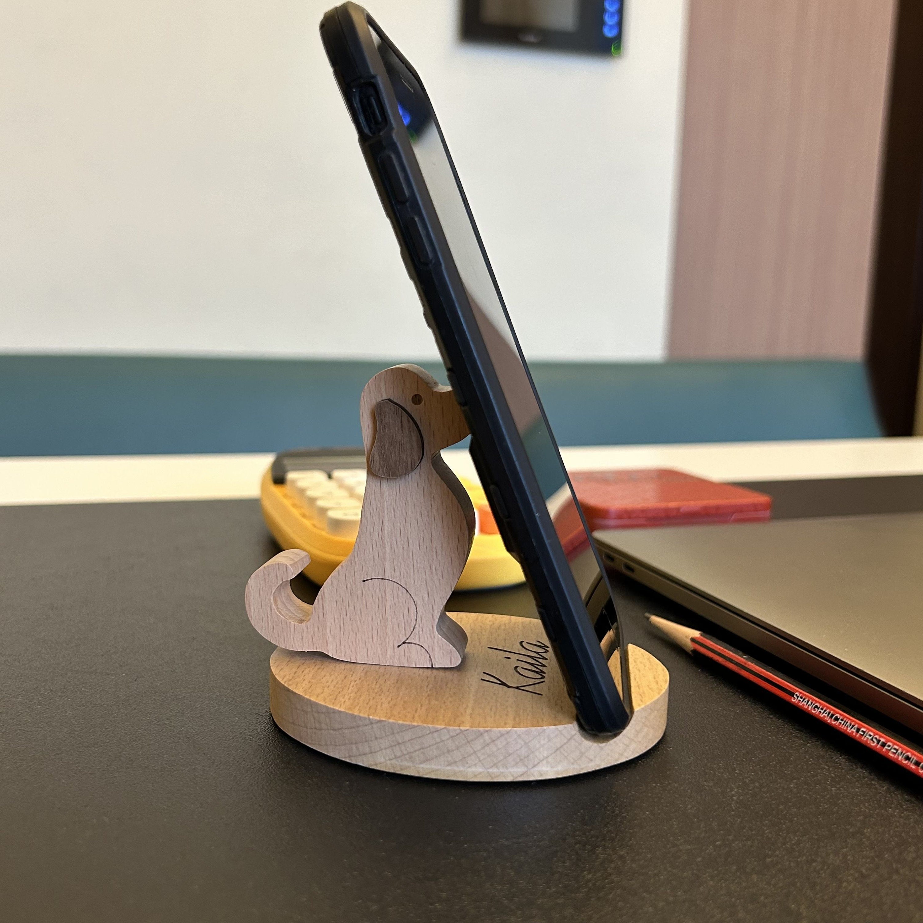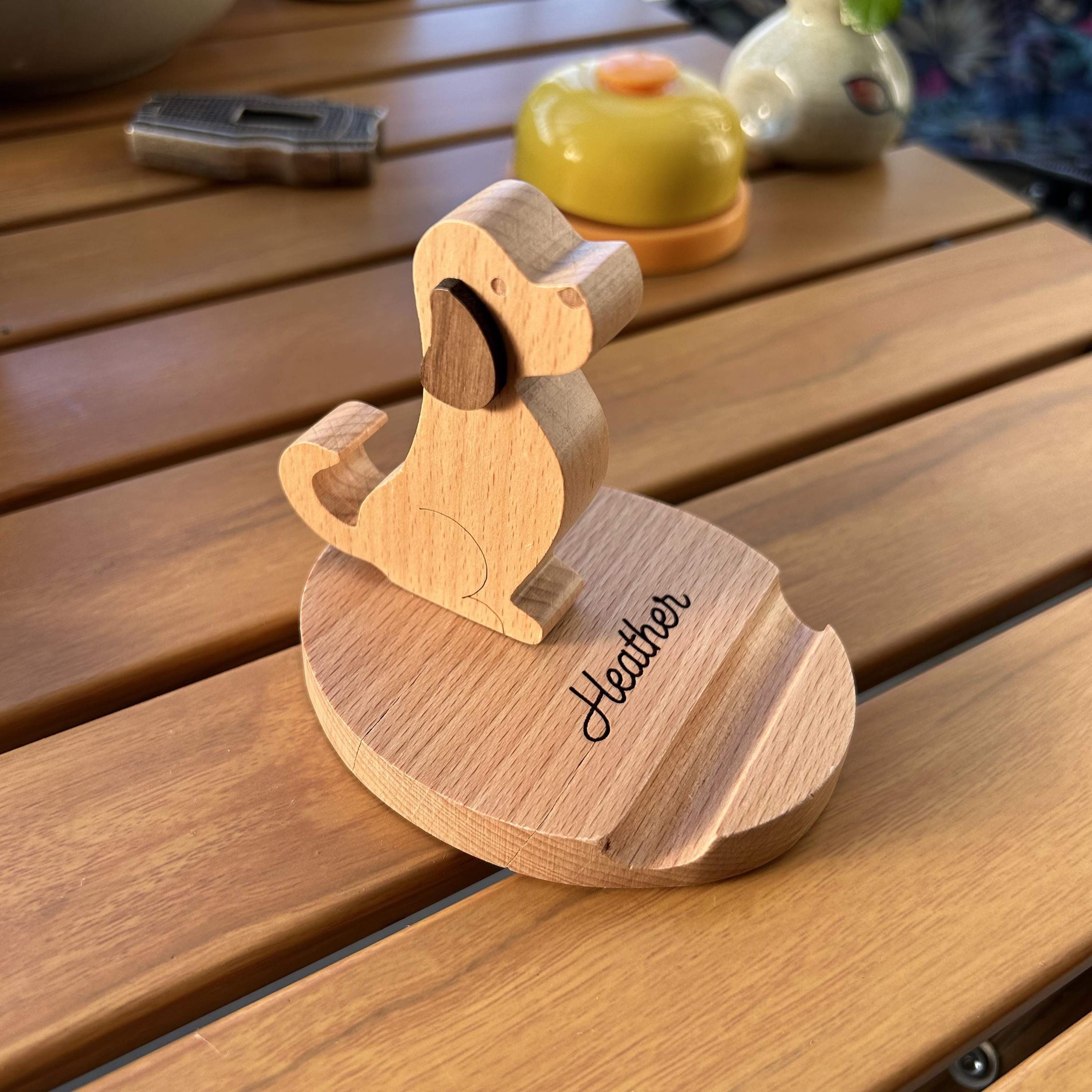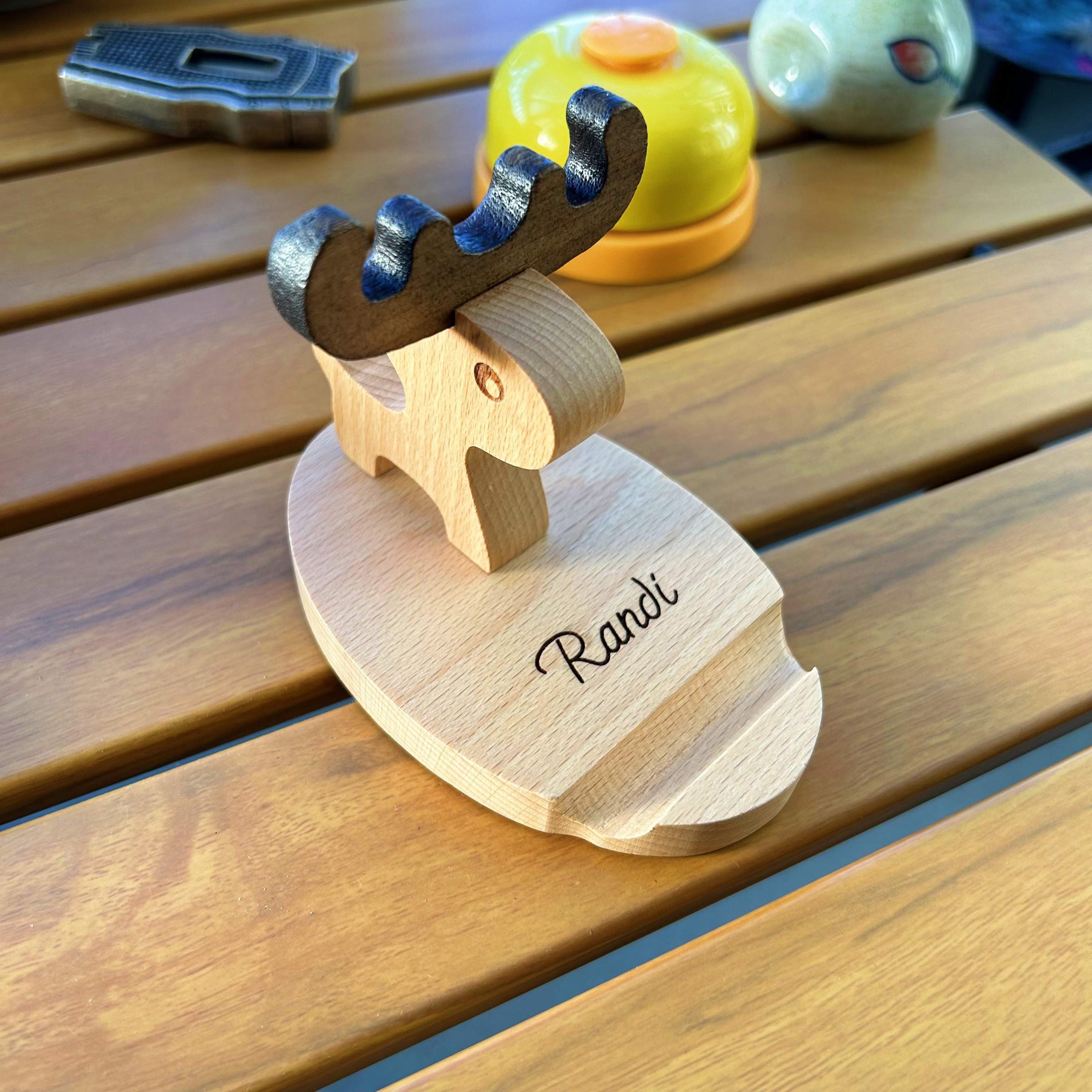 Personalized Wood Cell Phone Tablet Stand, Handmade Engraved Animal Cell Phone Holder, Cradle Mount Organizer for Office, School, and Home