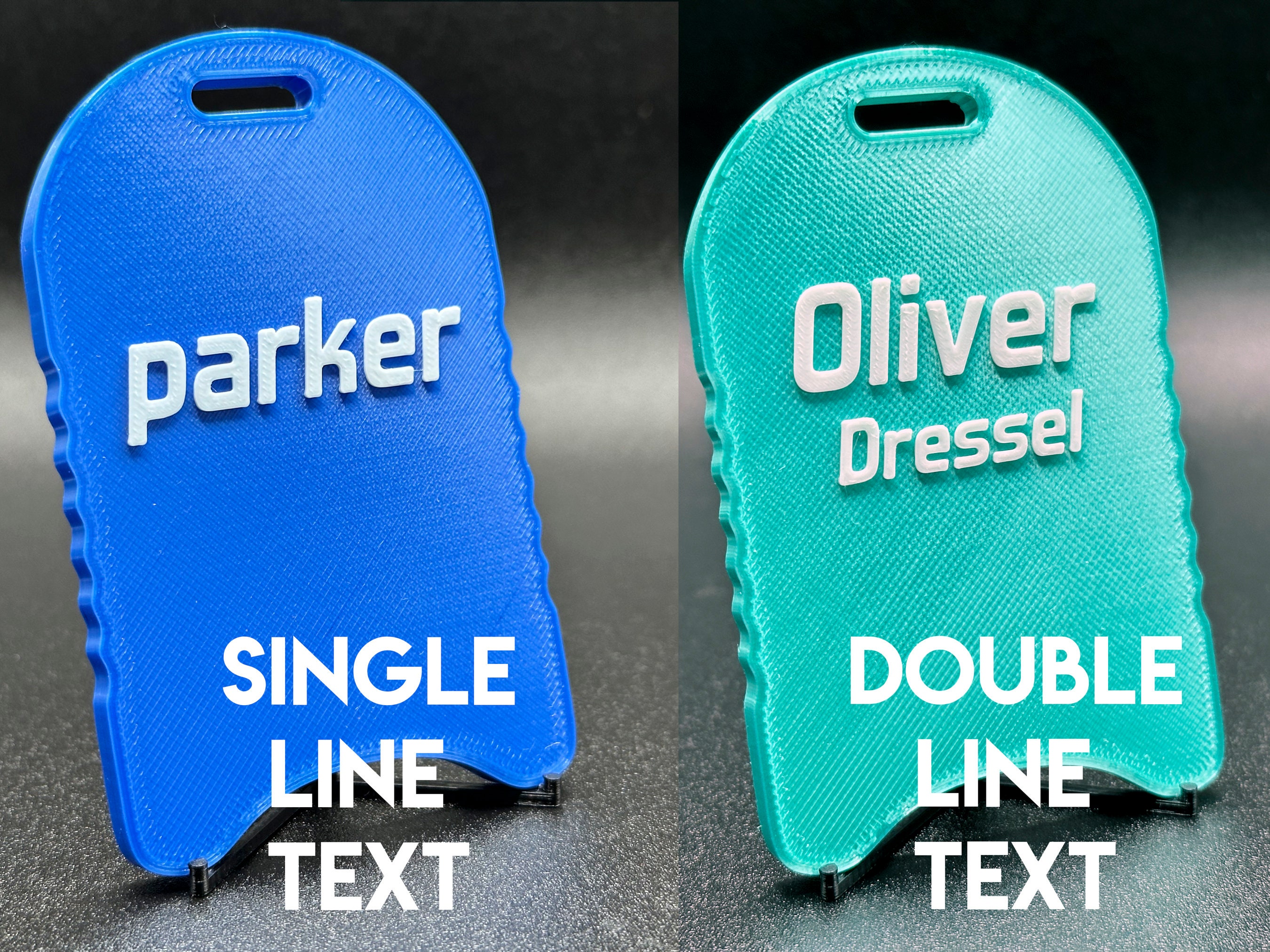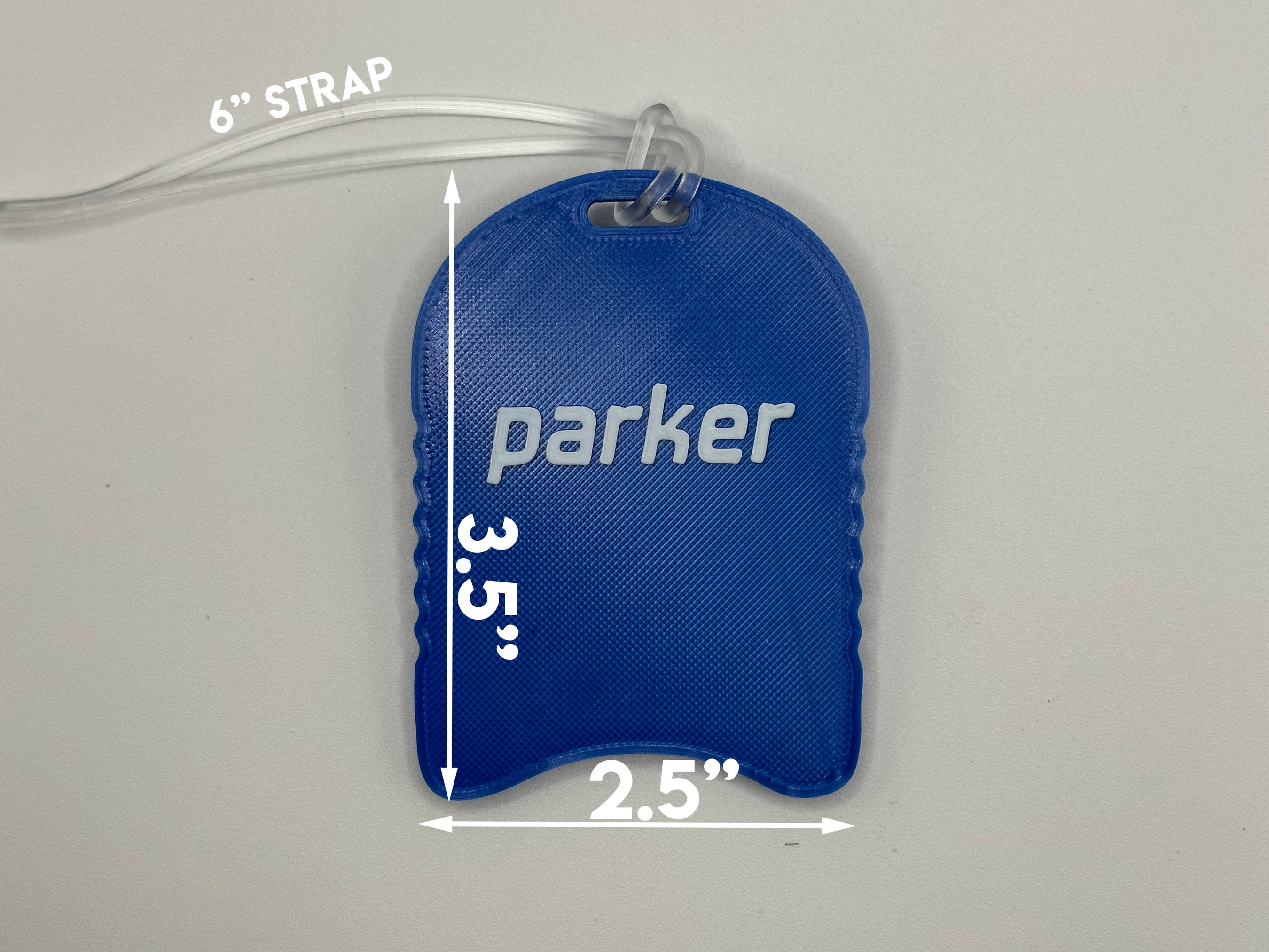 This custom designed and 3D printed bag tag is the perfect team gift or just fun purchase for any swimmer in your life. The name is customizable with up to two lines of text (the second line is a smaller font size as pictured). We offer multiple color options as shown in the photos. The bag tag is approximately 2.5" wide by 3.5" tall, is printed using a waterproof and lightweight PLA plastic material, and includes a 6" silicone loop band.