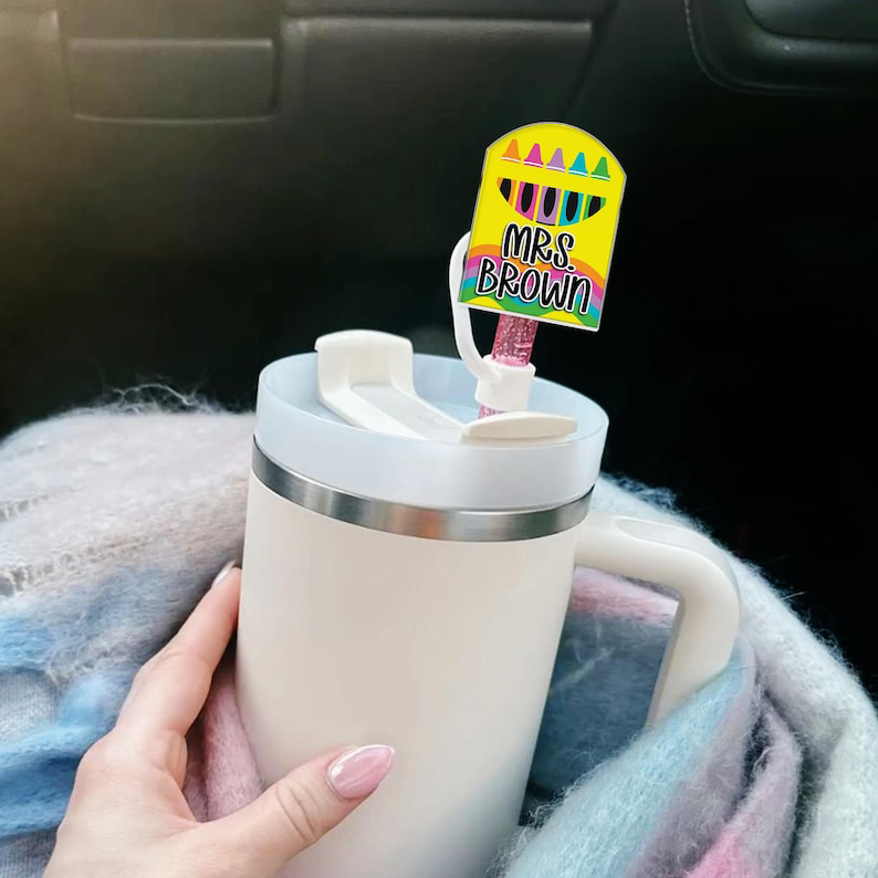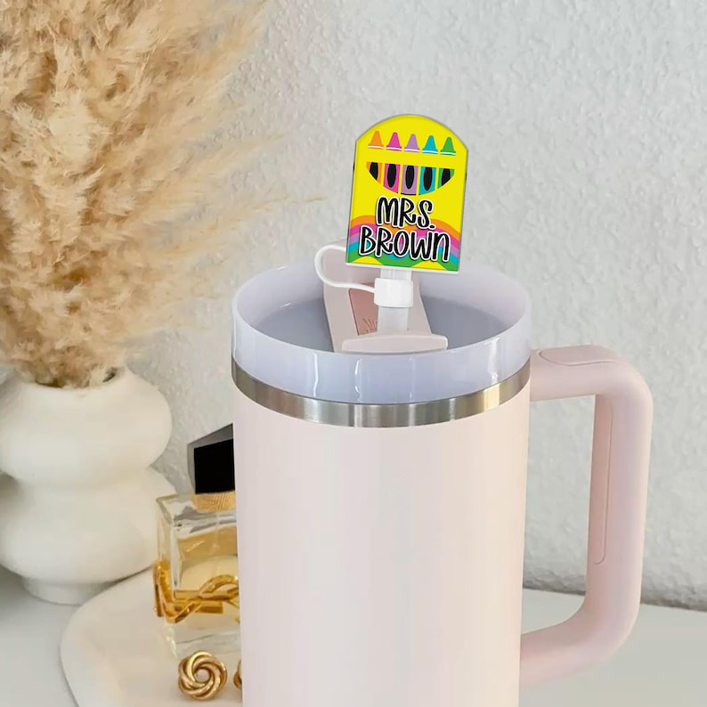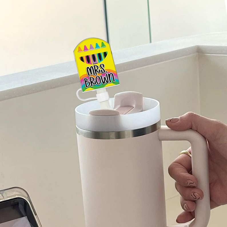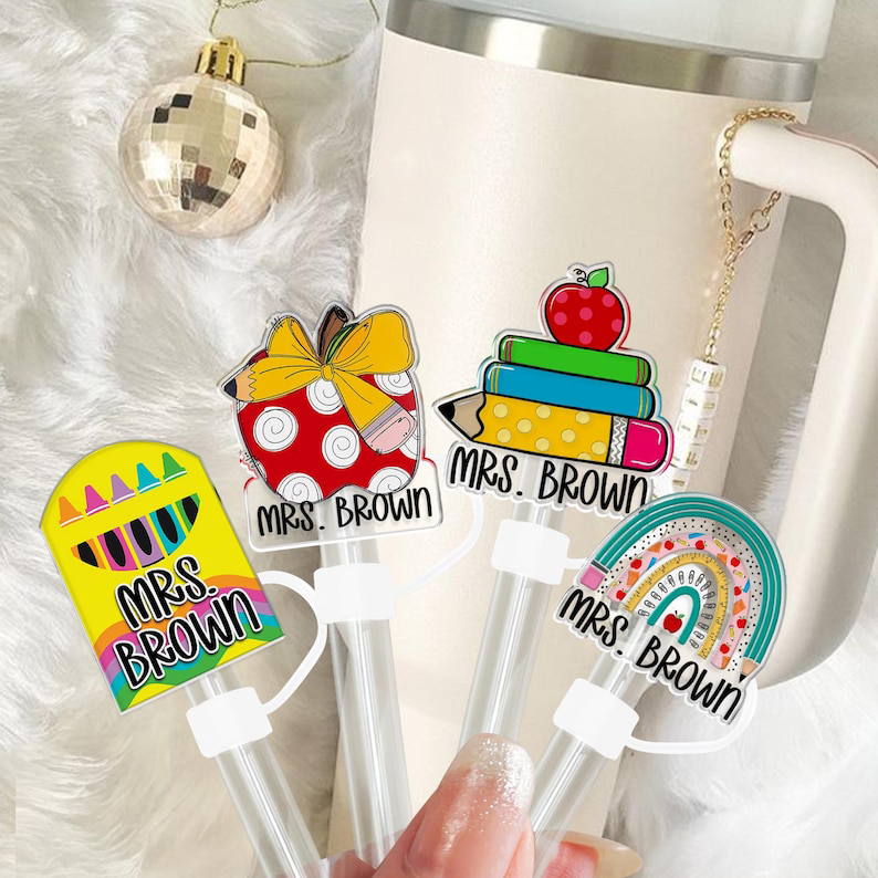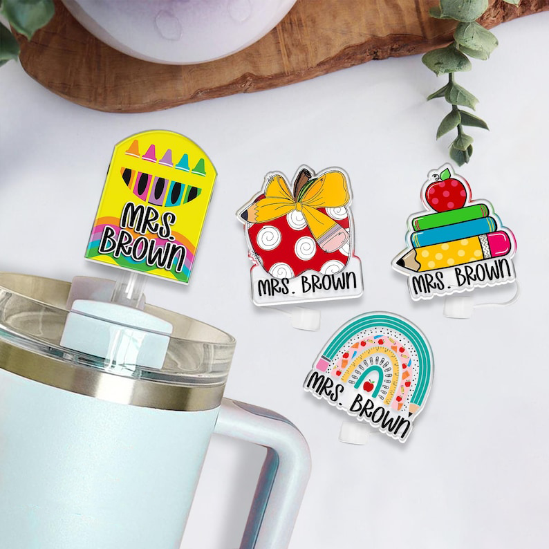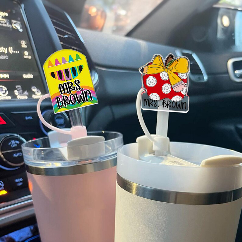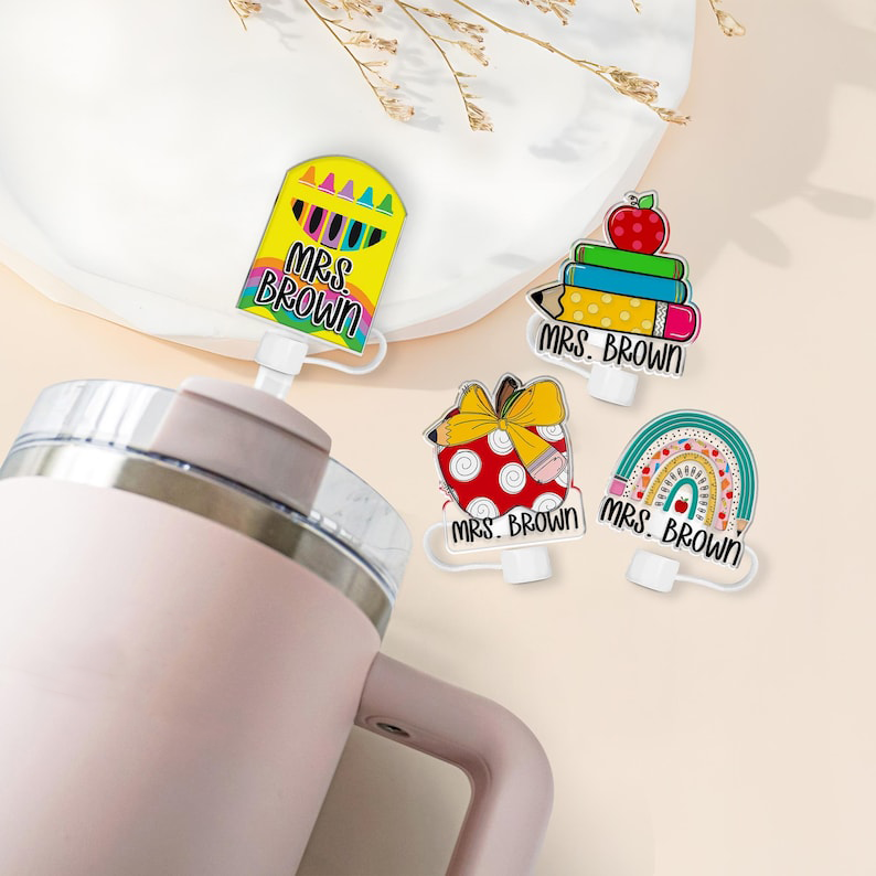 Crafted with care, each straw topper can be customized with the teacher's name, adding a unique flair that they will love. It's not just a cute addition; it also helps keep drinks clean and free from debris, making it practical for daily use.